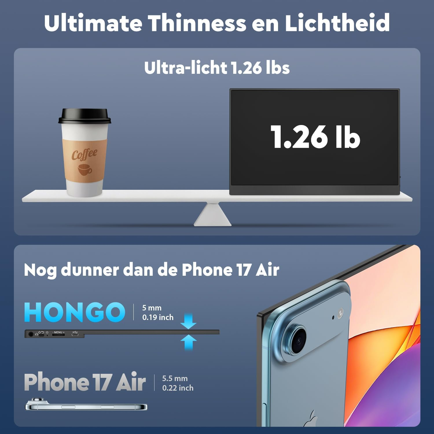 HONGO 15.6" Portable Monitor – Full HD IPS Draagbaar Scherm met HDR & USB-C