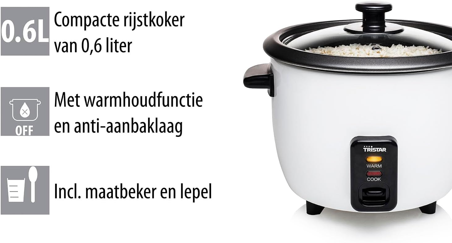 Tristar RK-6117 Mini Rijstkoker – 0,6 Liter met Warmhoudfunctie, Wit