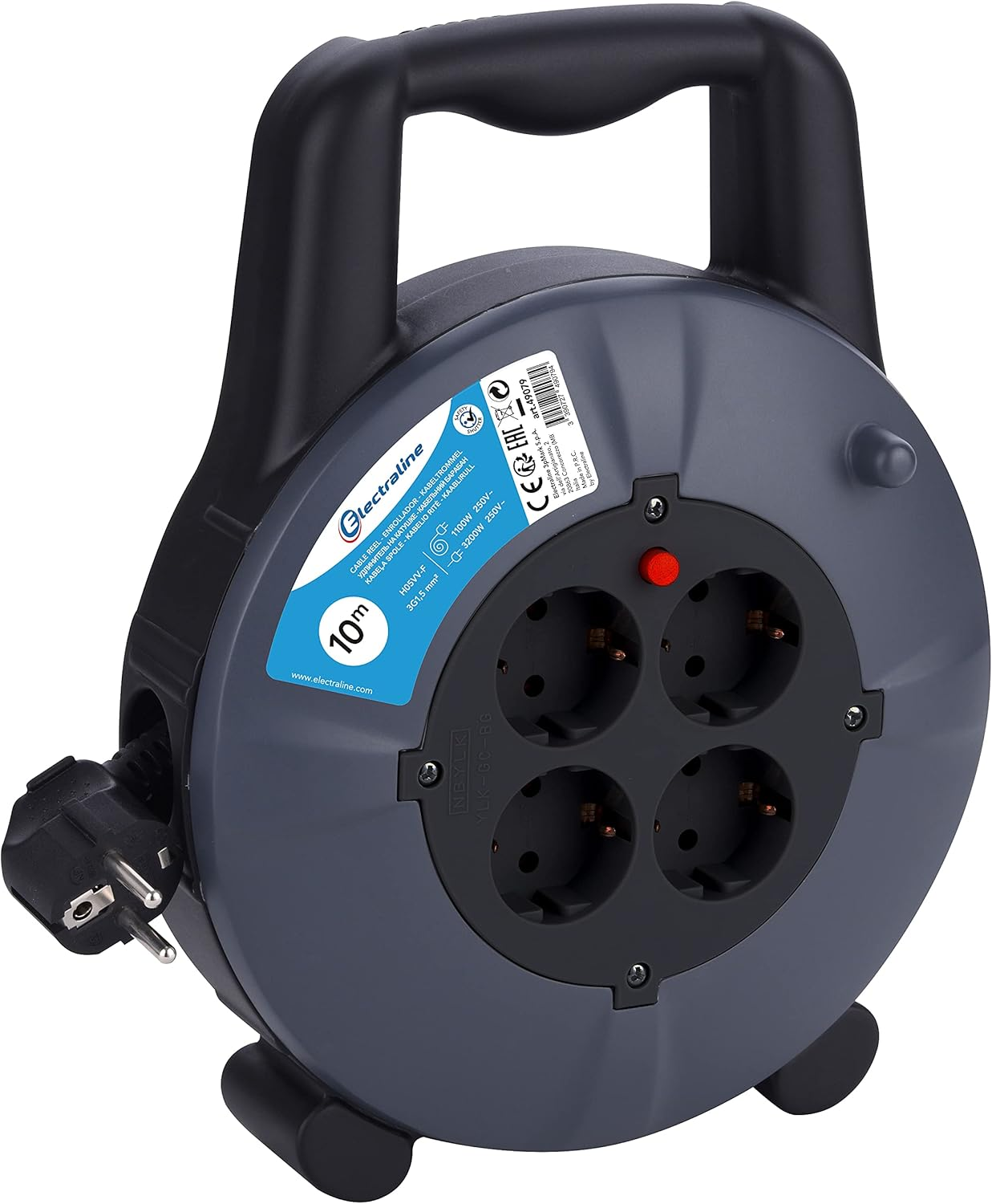 Electraline 49079 Kabelhaspel – 10 m H05VV-F 3G1,5, IP20, 4 Schuko-stopcontacten