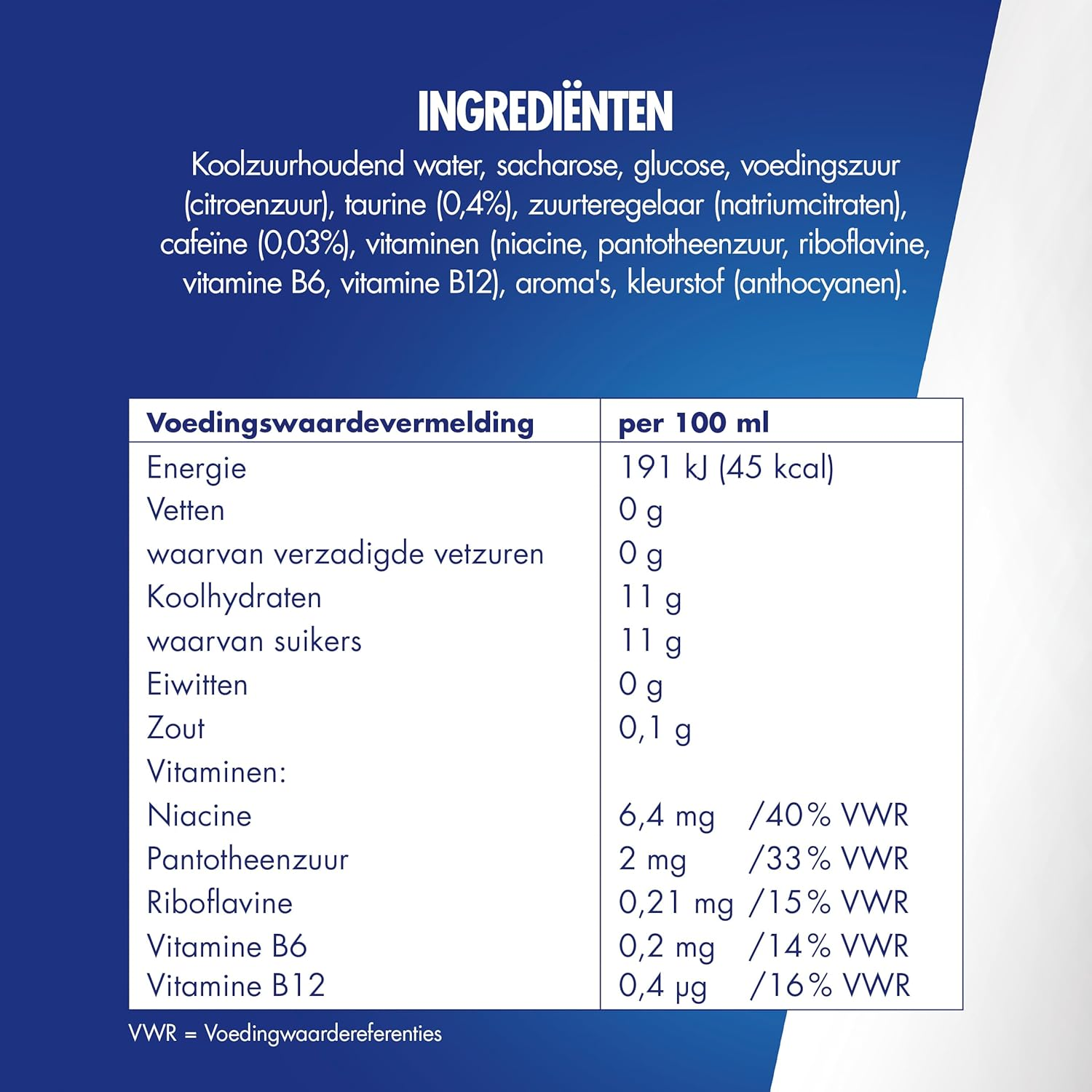 De Red Bull Energy Drink 24-pack bevat 24 blikjes van 250ml en biedt de klassieke, wereldwijd geliefde energieboost. Red Bull stimuleert lichaam en geest en is populair bij topsporters, studenten en actieve professionals. Dankzij de koolzuurhoudende formule is het verfrissend en makkelijk mee te nemen.