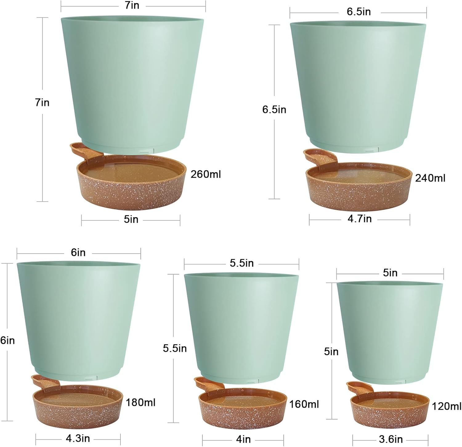 Deze set van 5 kunststof bloempotten is perfect voor binnen, op het balkon of in de tuin. Dankzij het ingebouwde irrigatiesysteem kunnen je planten zelfstandig water opnemen, wat zorgt voor gezondere en langdurig gehydrateerde planten.