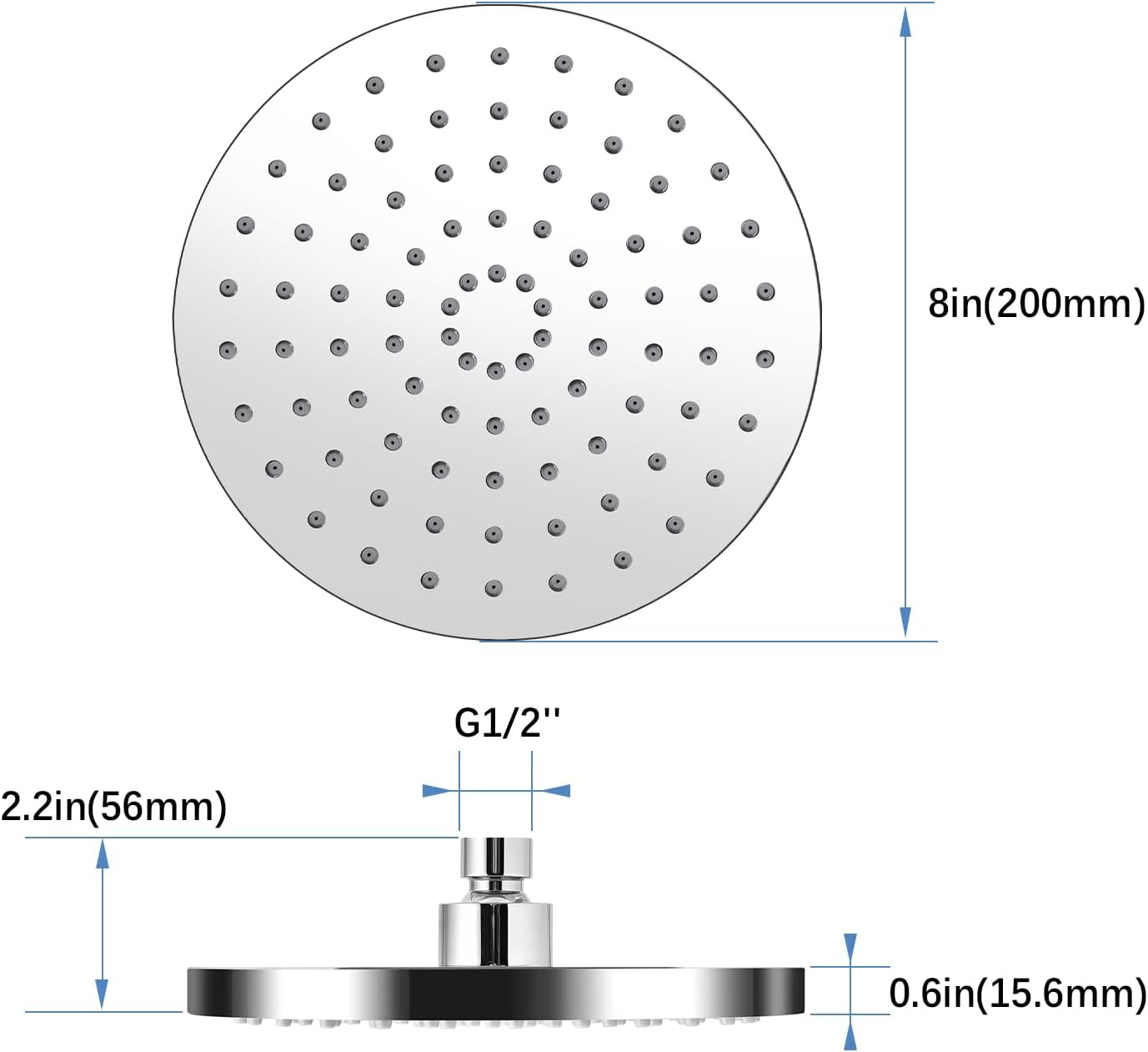 AiQInu Douchekop – Regendouche 20 cm | Hogedruk, Waterbesparend, Anti-Kalk, Roestvrij Staal