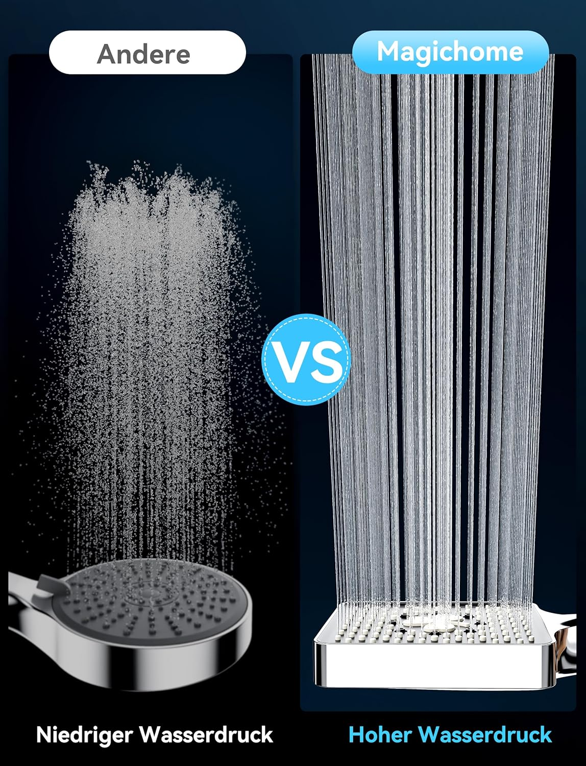 De Magichome hogedrukdouchekop is speciaal ontworpen om krachtige waterstralen te leveren, zelfs bij lage waterdruk. Met 5 verschillende sproeimodi kun je je douche-ervaring volledig aanpassen, van ontspannende regenstraal tot krachtige massage.