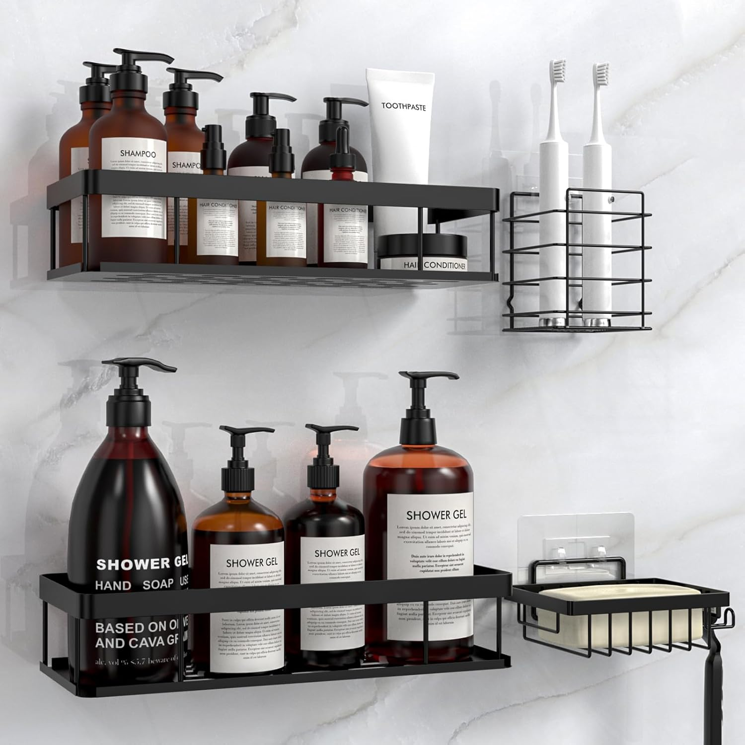 De UUlioyer doucheplank set bevat 3 hoekdouche caddies die eenvoudig zonder boren kunnen worden bevestigd met zelfklevende strips. Perfect voor het organiseren van shampoo, douchegel en andere badkameraccessoires, waardoor je douche netjes en overzichtelijk blijft. Het zwarte ontwerp geeft een moderne uitstraling aan elke badkamer.
