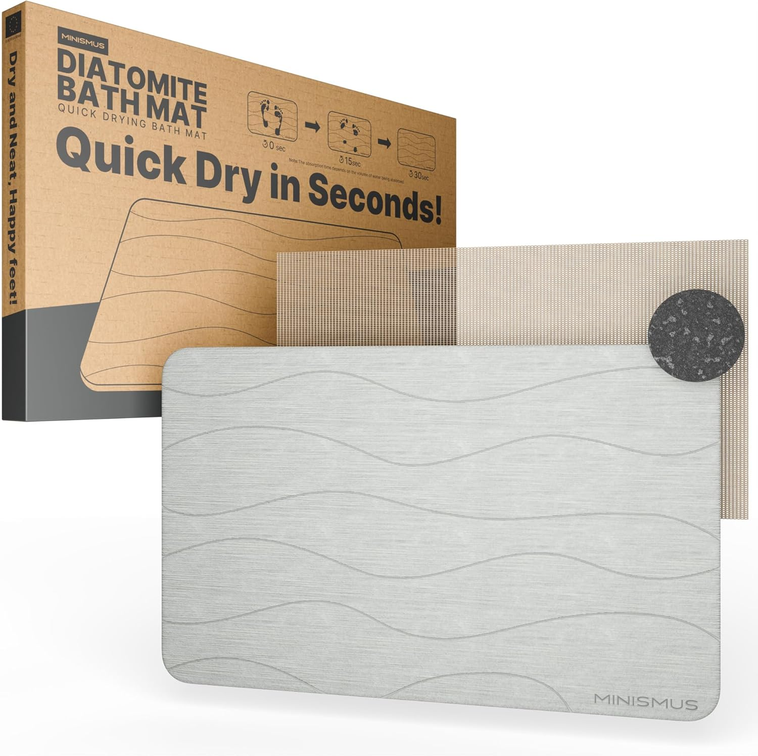 De Minismus diatomite badmat is een moderne en hygiënische oplossing voor de badkamer. Deze stenen douchemat is gemaakt van diatomiet, een natuurlijk materiaal dat water extreem snel absorbeert en binnen ongeveer 30 seconden volledig droogt.
