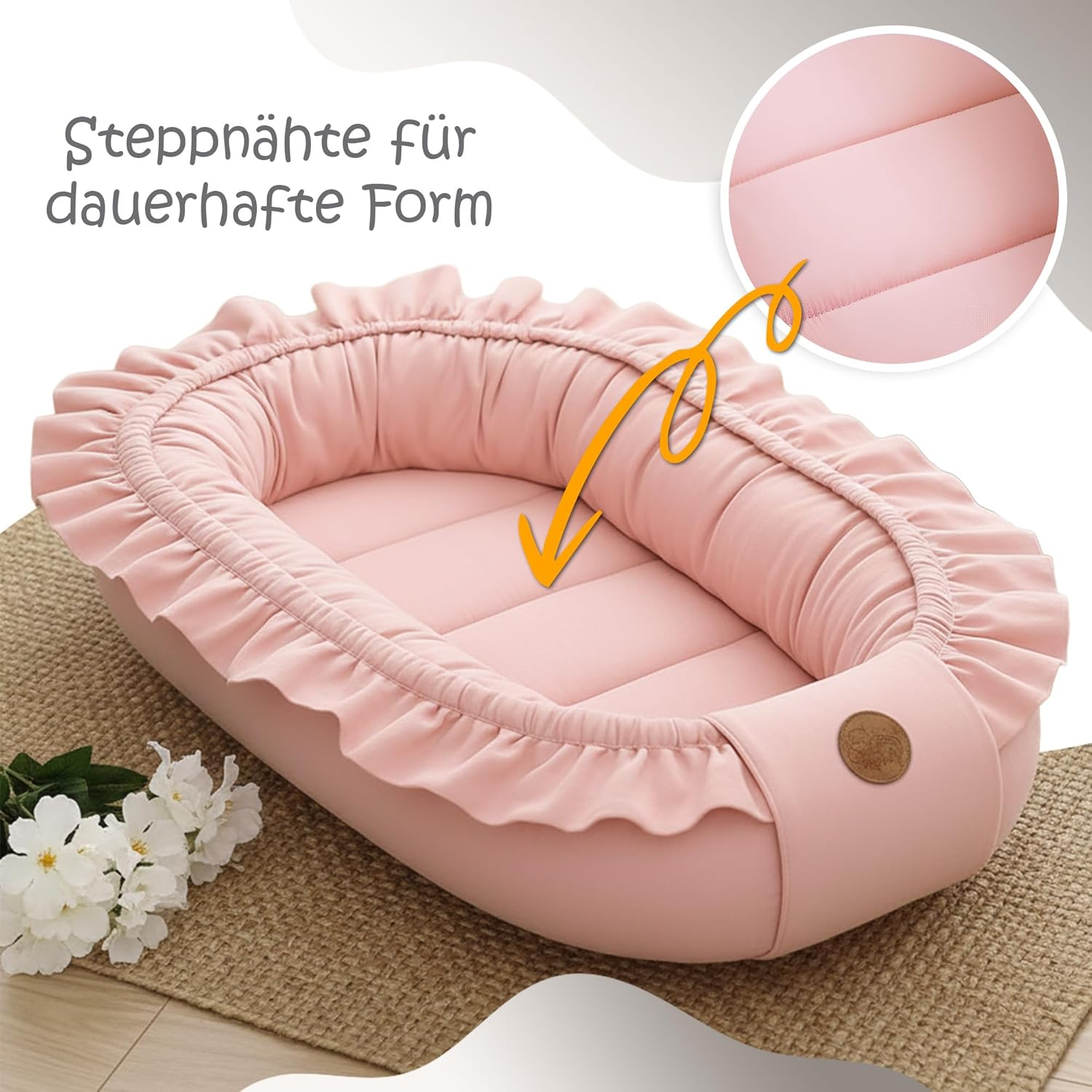 Dit babynest is draagbaar en veelzijdig, ideaal voor gebruik in een kinderbed, op reis of bij bezoek. Het zachte en warme ontwerp maakt het perfect als knuffelnest of cocon, zodat je baby overal comfortabel kan rusten.
