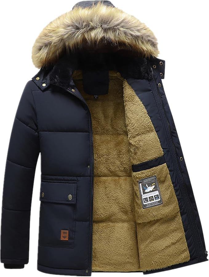 ANUFER Heren Winter Parka – Dikke Gewatteerde Jas met Bontkap