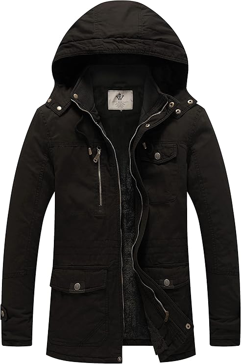 WenVen Heren Fleece Parka – Warme Jas met Verwijderbare Capuchon Zwart