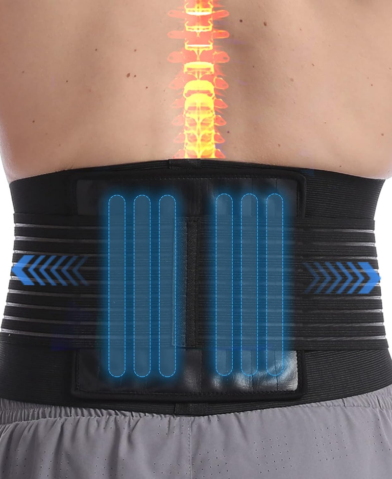 Verstelbare onderrugsteun met 6 stevige beugels voor effectieve pijnverlichting bij ischias en rugklachten. Geschikt voor mannen en vrouwen.