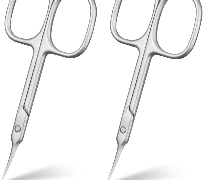 Set van 2 scherpe gebogen nagelriemscharen. Multifunctioneel en duurzaam voor manicure en pedicure. Precies en makkelijk in gebruik.